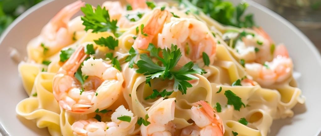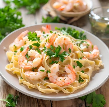 A rich and creamy shrimp pasta with garlic, Parmesan, and a touch of lemon zest, served with fresh parsley for a flavorful, easy dinner.