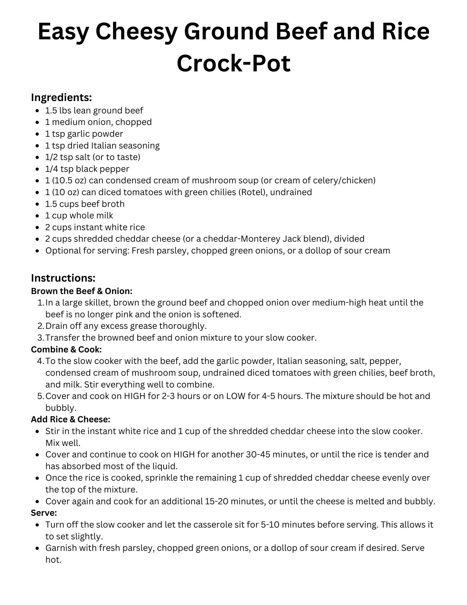 This ultimate comfort food casserole combines seasoned ground beef, tender rice, and a creamy, cheesy sauce, all made effortlessly in your slow cooker.