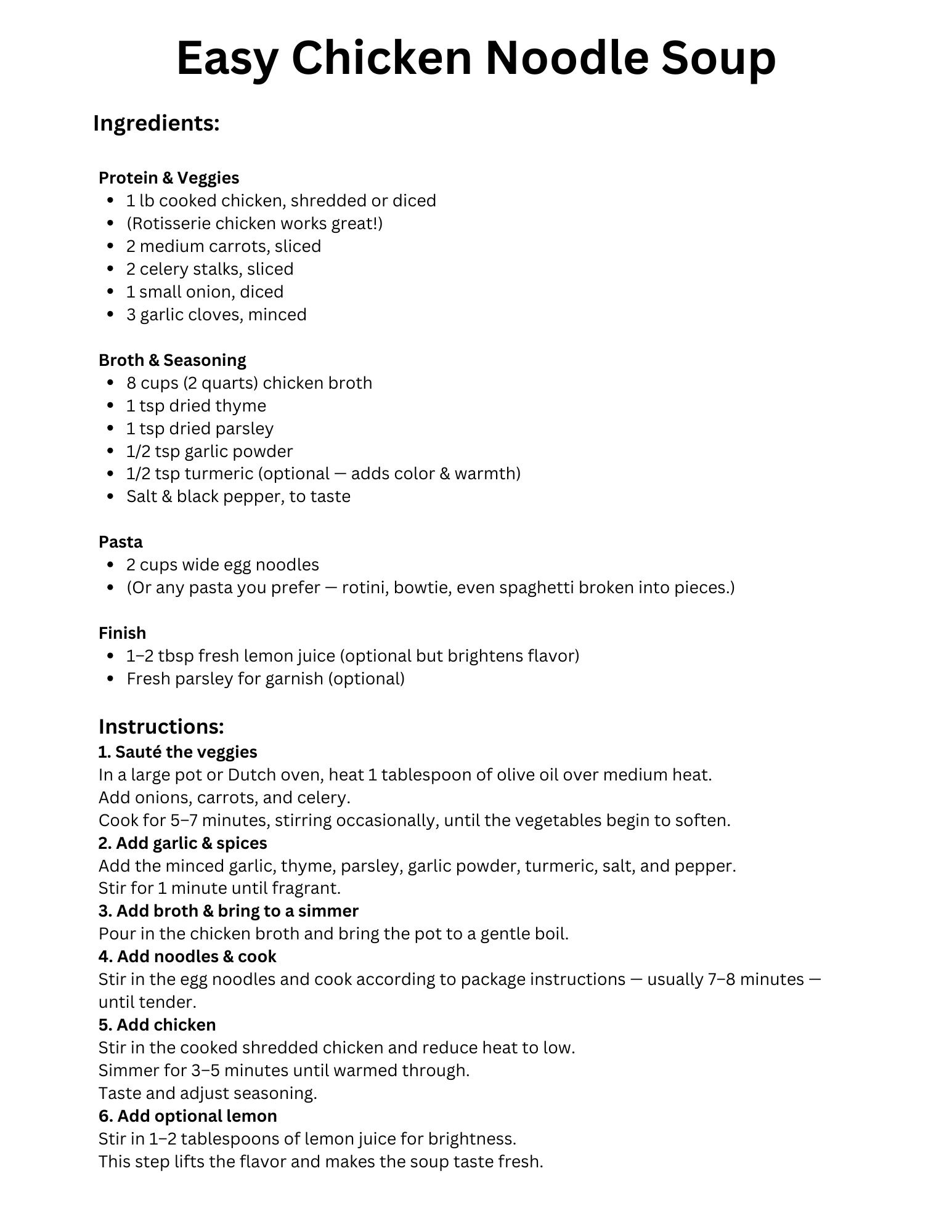Warm, cozy, and budget-friendly, this Easy Chicken Noodle Soup comes together in under 35 minutes using simple ingredients.