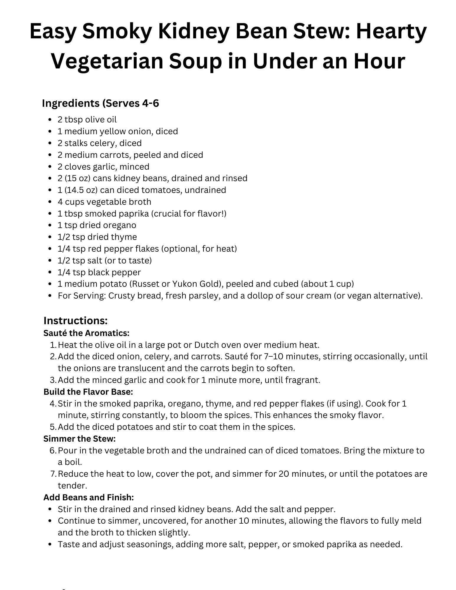 Easy Smoky Kidney Bean Stew: Hearty Vegetarian Soup in Under an Hour