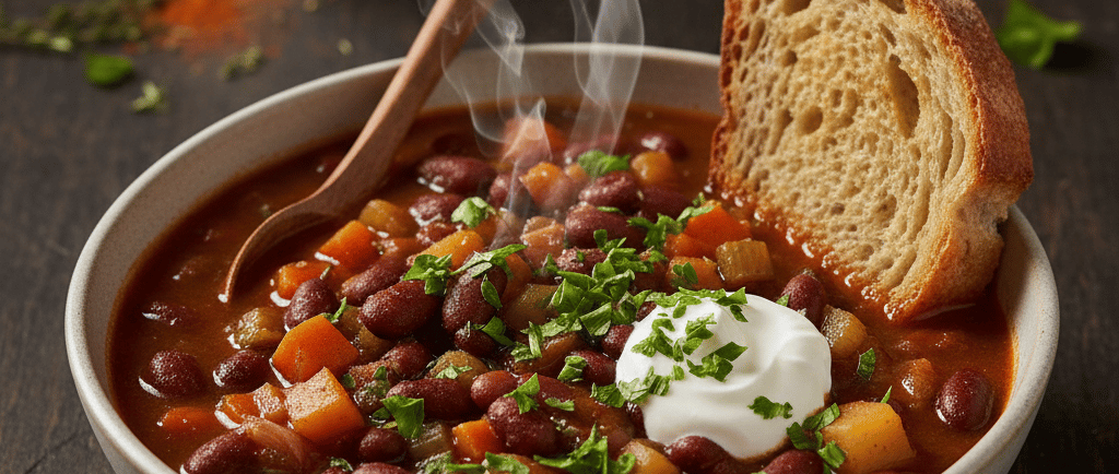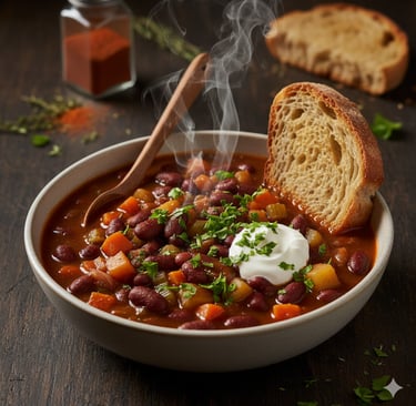 A deeply flavorful and robust vegetarian stew featuring kidney beans, diced root vegetables, and a rich tomato base seasoned with smoked paprika. Perfect for a cozy, budget-friendly weeknight meal.