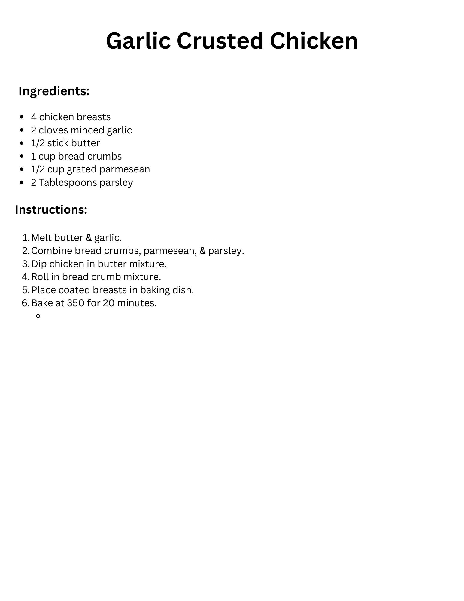 Garlic Crusted Chicken