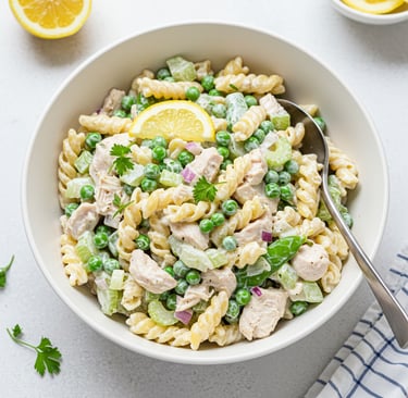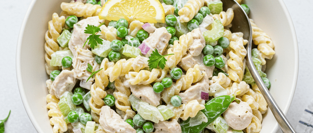 This light and creamy chicken pasta salad with peas is a quick, refreshing meal made with simple ingredients—perfect for lunch or easy weeknight dinners.